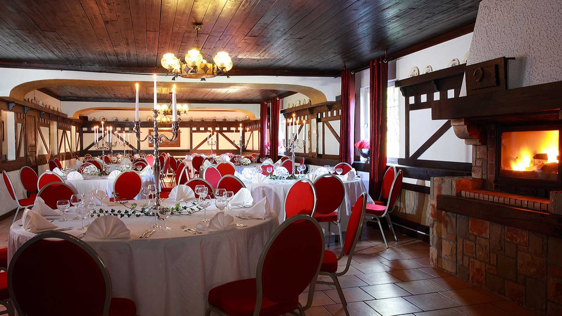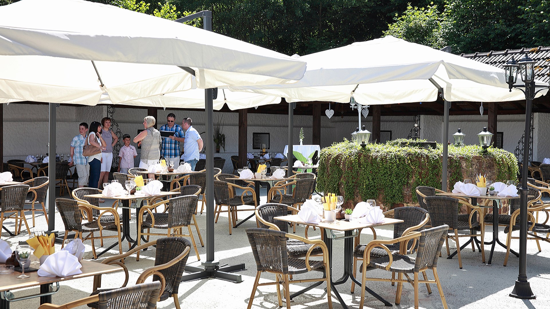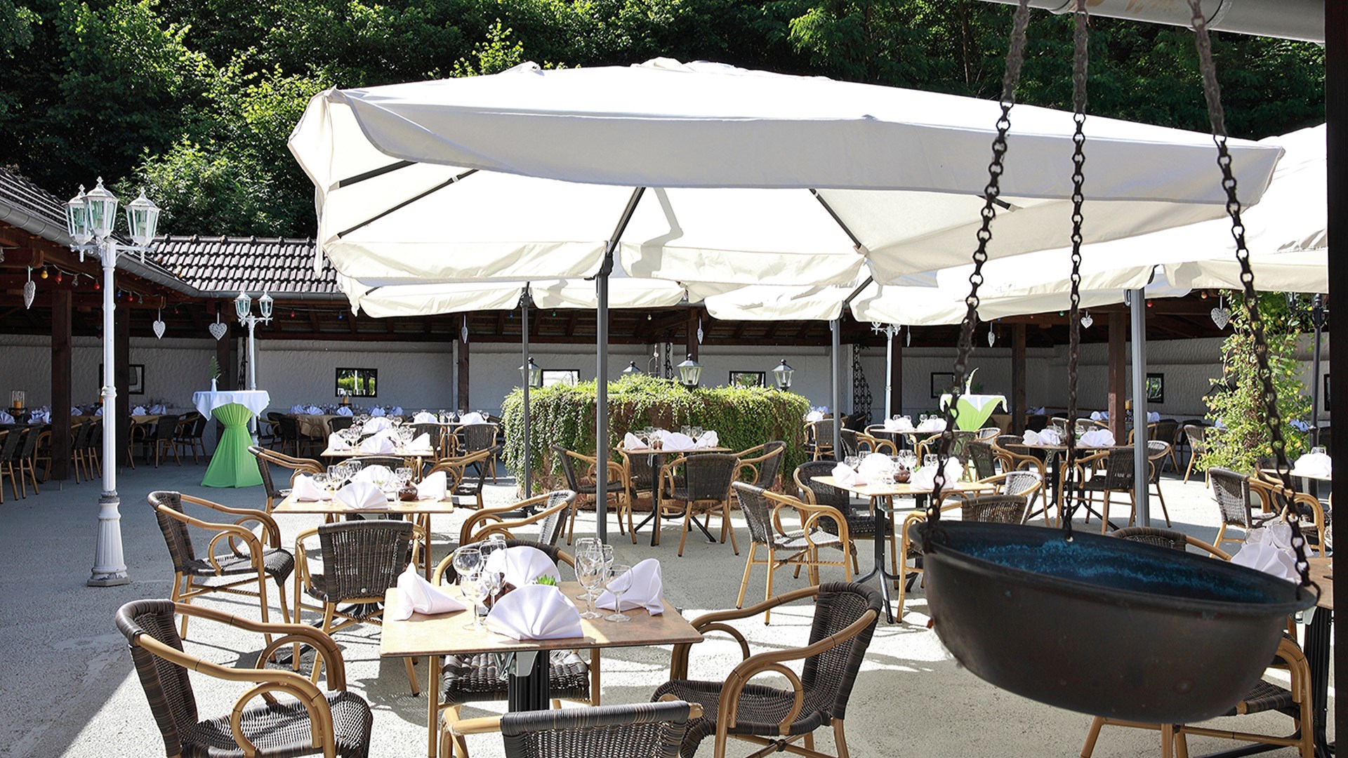 Laden Sie Ihre Angehörigen, Kollegen und Freunde in ein Restaurant ein, in dem Bodenständigkeit mit gastronomischer Klasse und persönlichem Service einhergehen. Genießen Sie die herrliche Ruhe inmitten des Waldes auf unserer großzügigen Terrasse. Auf unsere kleinen Gäste wartet der große Spielplatz: Rutschbahnen, Hängebrücken, Seilwände... Ein beheizter Raucherraum in origineller Fassform ist ein geselliger Treffpunkt für Raucher.